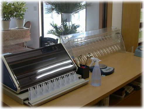 調剤台です。漢方薬を調合するところです。衛生面には特に気をつけています。